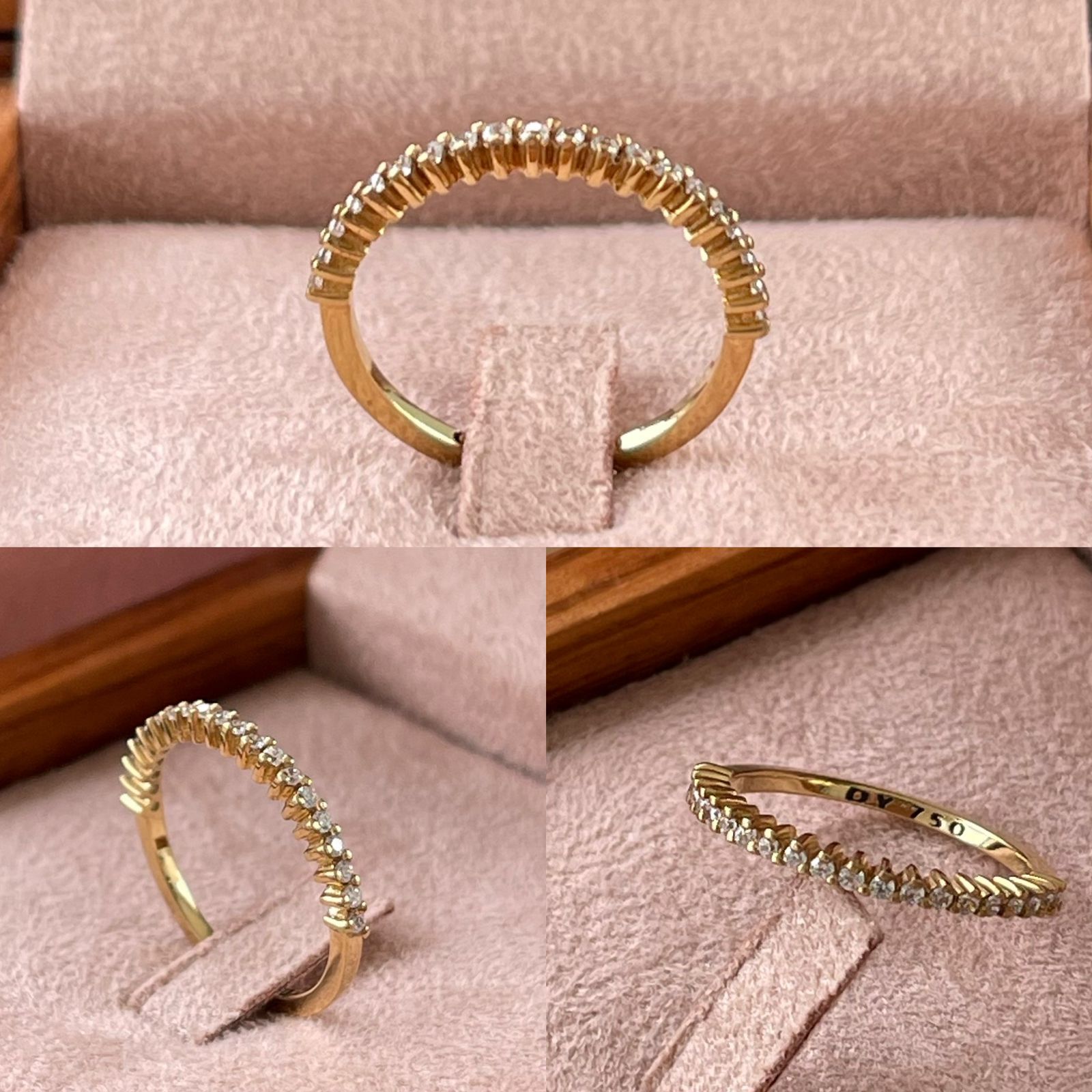 Um anel aparador feito em ouro 18 quilates maciço que valoriza qualquer aliança com um brilho fino e elegante. Disponível com 20 pedras lapidadas de 1,0 ponto cada, trazendo um toque de sofisticação para o dedo.